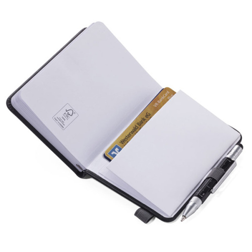 качественная бумага, 128 перфорированных страниц, линия отрыва каждой, отделение для визиток.