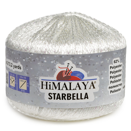 Новинка от Himalaya - Starbella - это фантазийная пряжа с эффектной люрексовой нитью, состоящая из: 62% Полиэстер, 24% Глиттер (металлическая нить), 14% Полиамид. Она прекрасно подойдёт для вязания вечерних нарядов и ярких аксессуаров. Благодаря мерцающему эффекту пряжа выглядит очень празднично и стильно, а особенно хорошо смотрится в легких шалях, ажурных кардиганах, струящихся платьях.