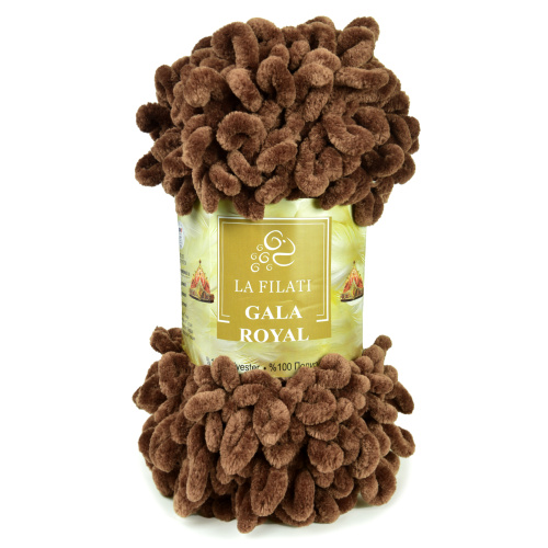 Эта фантазийная пряжа для ручного вязания невероятно мягкая, объемная и очень приятная на ощупь. Плюшевая ниточка изготовлена в виде готовых петелек. Вязать из нее легко и быстро без спиц и крючков. Готовые петли продеваются одна в другую в определённом порядке. В итоге получаются разнообразные узоры: плетёнка, колосок, зефирка, жемчуг, соты и ещё множество других узоров. Из La Filati GALA ROYAL создаются уютные пледы, очаровательные коврики-игрушки, мягкие подушечки и халаты, а также балаклавы, шапки, шарфы и другие теплые, лёгкие, неповторимые изделия.