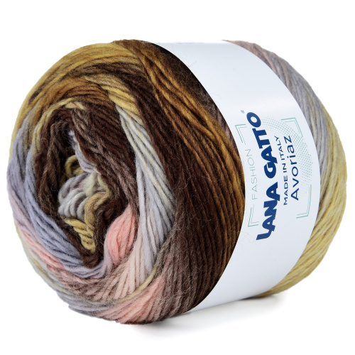Lana Gatto AVORIAZ — это 100% тонкая шерсть мериноса в пестрых клубках, где один цвет постепенно переходит в другой . Пряжа имеет режим «машинная стирка», поэтому ее можно стирать в стиральной машине на программе для деликатной шерсти. Это отличная пряжа для ярких шарфов, пончо, а также пуловеров, платьев и другой одежды, связанной спицами или крючком.