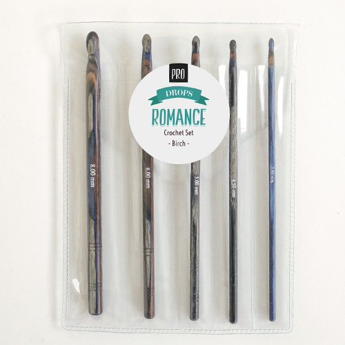 Набор крючков для вязания Drops ROMANCE CROCHET SET, полированная береза, 5 видов крючков в наборе.