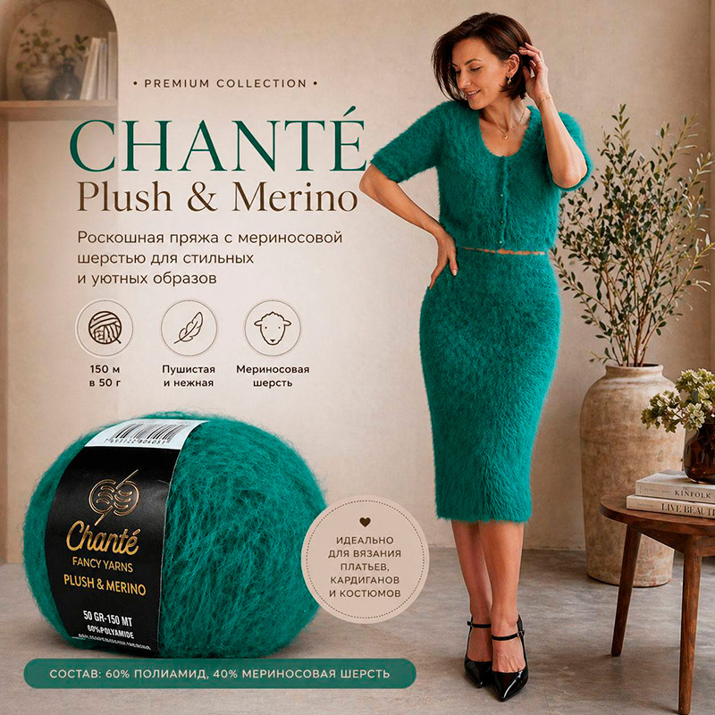 Пушистая, нежная и невероятно стильная пряжа Chanté Plush & Merino — идеальный выбор для трендовых вязаных изделий.