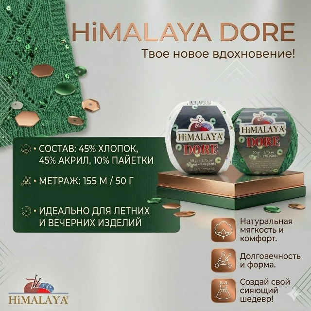 Познакомьтесь с изысканной пряжей Himalaya Dore - идеальным сочетанием мягкости, лёгкости и нежного блеска.